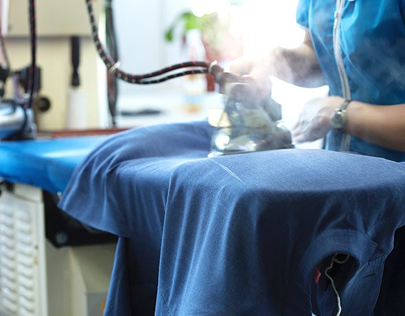 Dry Cleaning offers steam ironing using vacuum press tables. The temperature control iron boxes ensure different types of garments get appropriate heat for pressing.